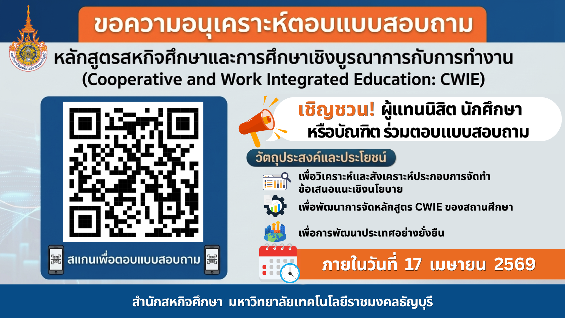 มกราคม 14, 2026ประกาศผลการประกวดแข่งขันสหกิจศึกษาดีเด่น ประจำปีการศึกษา 2568