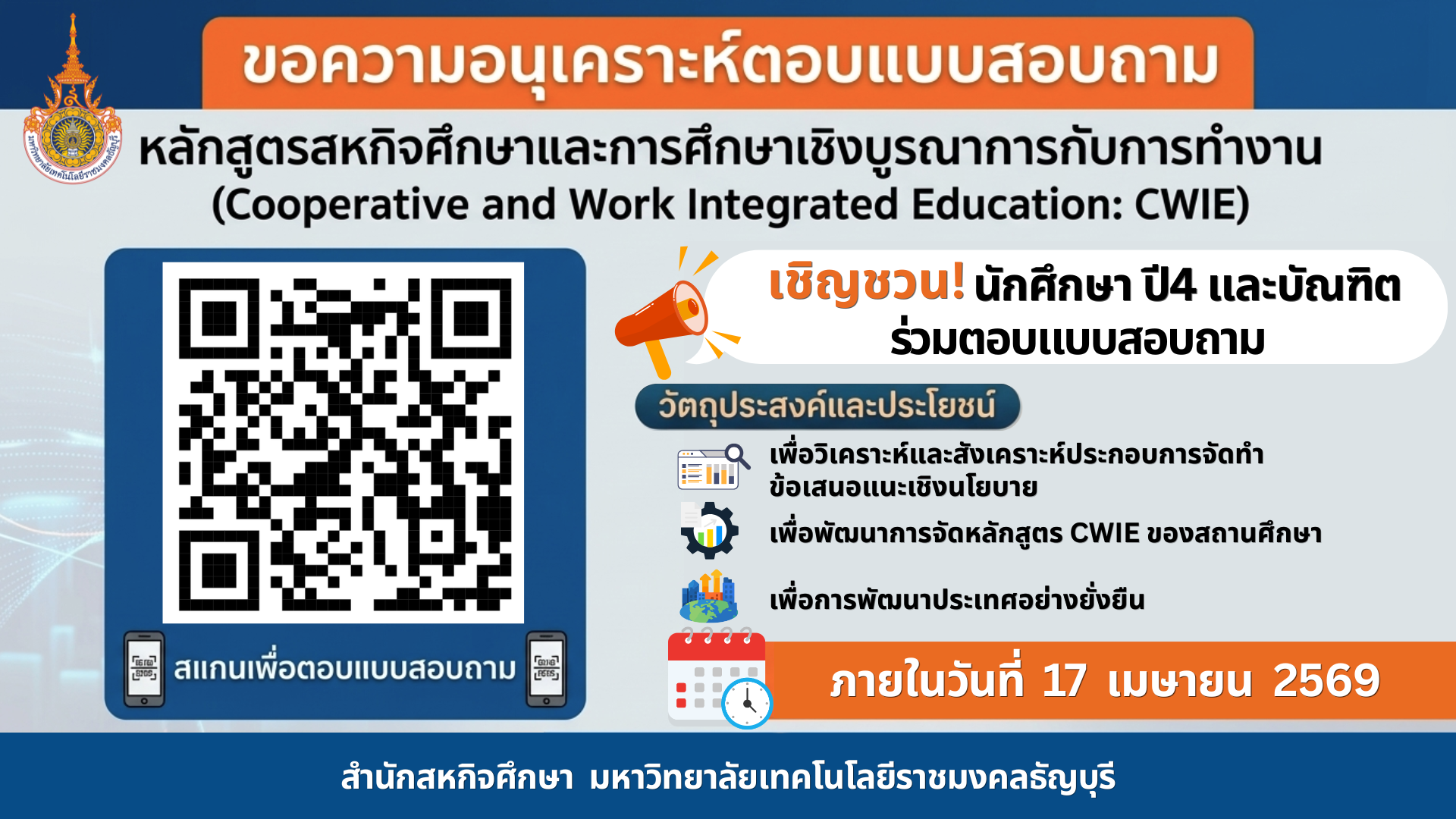 กุมภาพันธ์ 6, 2026เมื่อวันที่ 29 มกราคม 2569 เวลา 13.30 น. มหาวิทยาลัยเทคโนโลยีราชมงคลธัญบุรี จัดประชุมสร้างความร่วมมือด้านการฝึกประสบการณ์วิชาชีพ