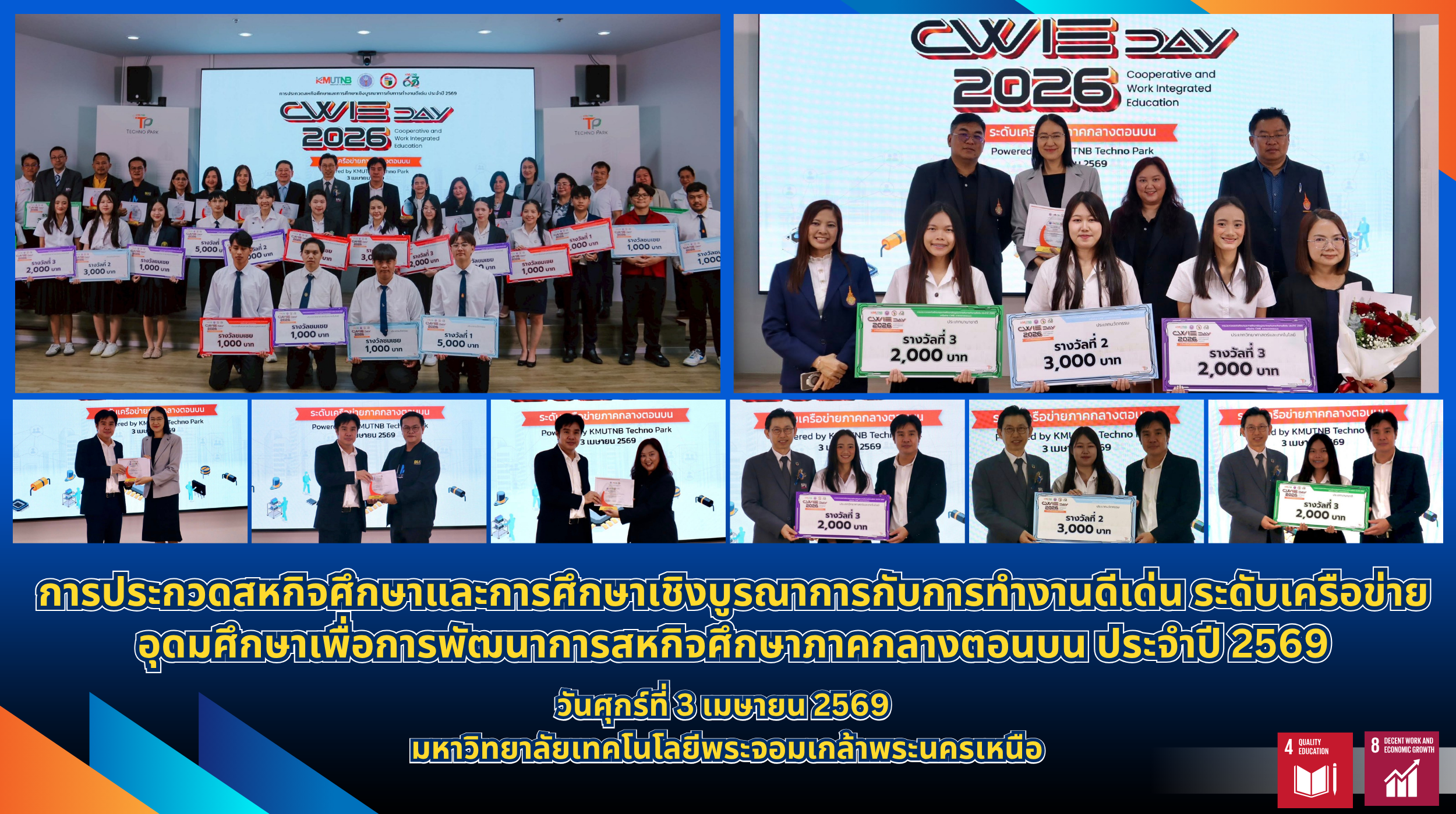 การประกาศผลการประกวดสหกิจศึกษา และการศึกษาเชิงบูรณาการกับการทำงานดีเด่น ระดับเครือข่ายอุดมศึกษา เพื่อการพัฒนาสหกิจศึกษาภาคกลางตอนบน ประจำปี 2569